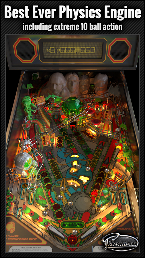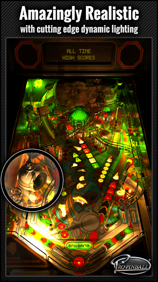 Pro Pinball - интересный и захватывающий симулятор пинбола с очень качественной физикой и графикой на наши с вами андроид девайсы. К сожалению, в вашем распоряжении будет всего один игровой стол, но с очень большим количеством различных деталей, которые по разному подсвечиваются, в общей картине создавая довольно красивый вид. В игре так же присутствует интересный и не обычный режим "без стекла", в котором вы сможете управлять шариком прикосновением пальца.