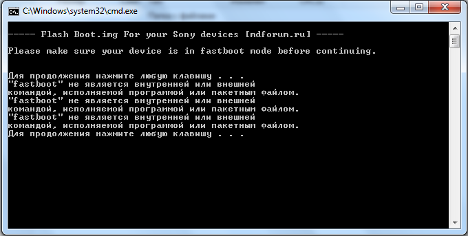 НА 4 ПУНКТЕ ВЫЛЕТАЕТ, fastboot не является внутренней или внешней командой, исполняемой программой или пакетным файлом.