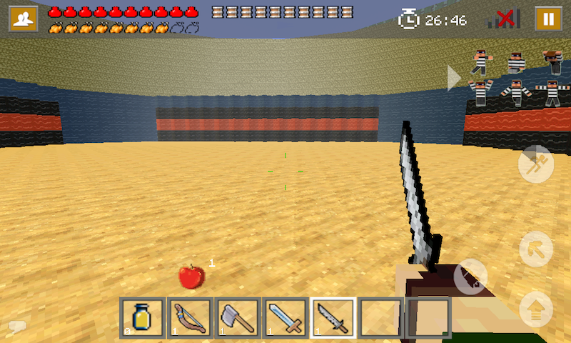 Survival Games - пиксельная приключенческая игра на андроид с огромным открытым миром. В этой игре вы будете стараться выжить в опасном мире, полном врагов. Путешествуйте по горам, лесам, морю и ищите там спрятанное оружие, еду и припасы. Всегда следите за своим уровнем голода, ведь если вы вовремя не найдете еду для своего героя он будет уязвим для своих врагов. Участвуйте в последних боях на арене с другими игроками, вы будет переведены туда в последние 5 минут игры, когда останутся не более 2 человек, используйте для боя лук, каменный и деревянный меч.