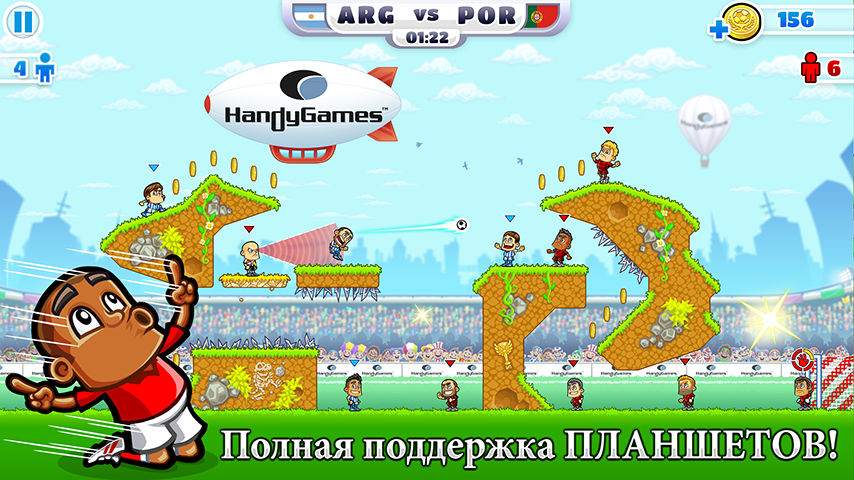 Super Party Sports: Football – это полная экшена и веселья игра-головоломка, основанная на законах физики. Решай запутанные головоломки, сражайся с различными типами противников и забивай голы. Принимай вызов, брошенный игроками из различных лиг и футбольных клубов. Выбери своих любимых 11 игроков для игры в собственном финале кубка 2014.