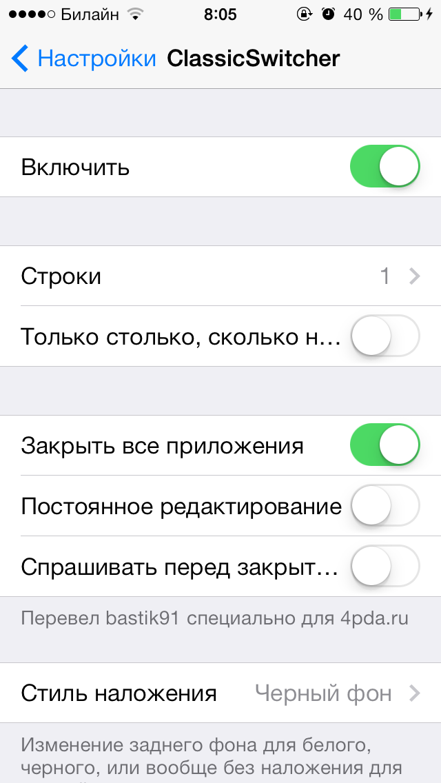 ClassicSwitcher - диспетчер задач из IOS 6 для IOS 7