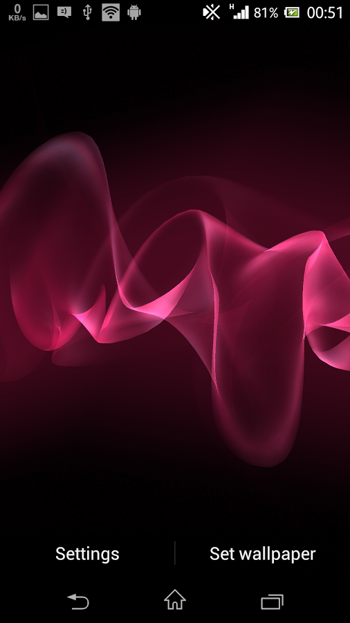 Вы вольны выбрать цветовую тему оформления из десяти предложенных и каждый тап по экрану будет менять вид волны на произвольный - очень хорошо смотрится! Конечно же, волны и сами неплохо движутся и переливаются по экранам, создавая чарующее зрелище, способное даже вызвать небольшую медитацию и размышления о неподвластном...