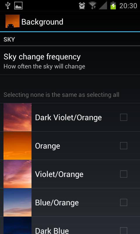 - «День моделирование" режим - изменяет небо автоматически в зависимости от времени суток. Вы можете изменить время и продолжительность восхода и заката.