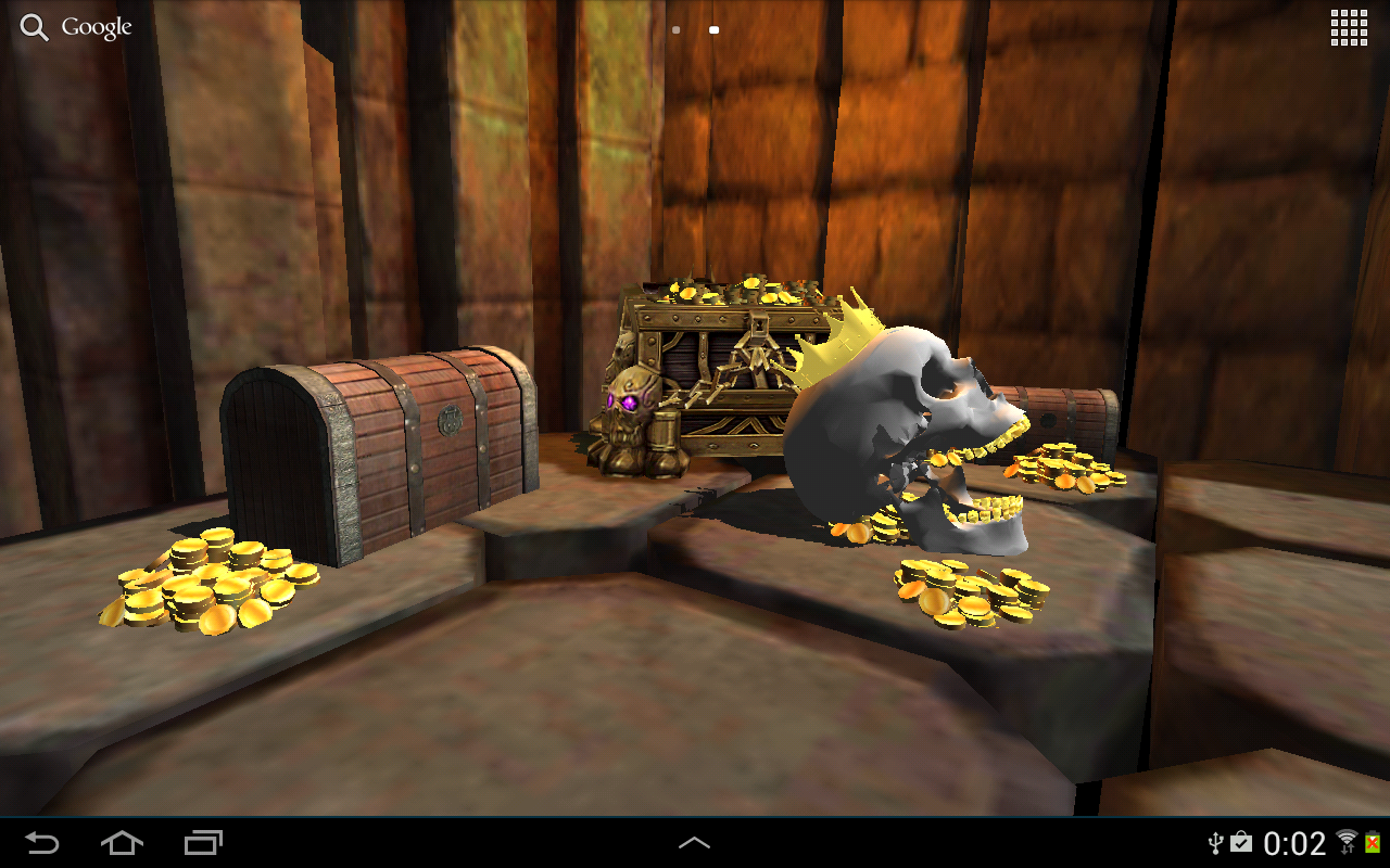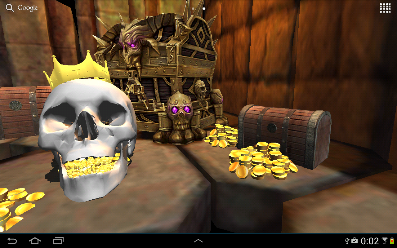 Открой для себя секреты и тайны древней забытой гробницы. Ты найдешь там золото, спрятанные сокровища и скелеты, охраняющие их. Все выполнено в реальной 3D графике с интерактивными элементами. Ты увидишь, как количество сокровищ в гробнице уменьшается или увеличивается в зависимости от уровня заряда батареи.