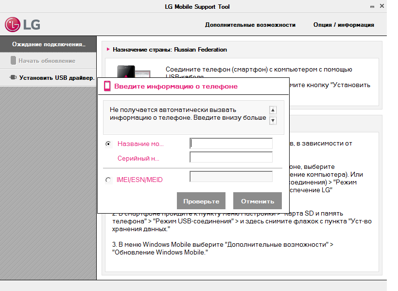 в LGMobile Support Tool нужно ввести информацию во все три строчки?