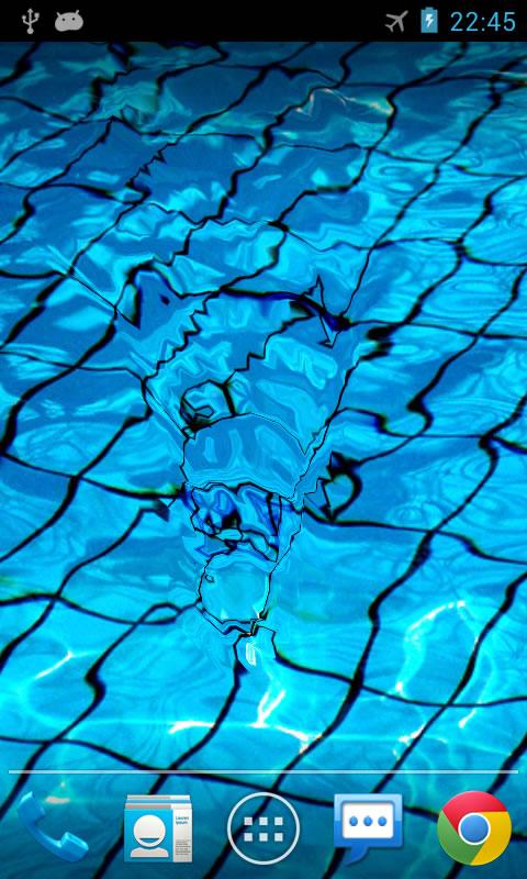 Капля воды живые обои, имитирующий эффект воде рябь. Коснитесь экрана, чтобы добавить капли воды на ваш рабочий стол! Теперь вы можете загружать свои собственные фотографии! Включить "Пользовательские Фото" в меню настройки экрана.
