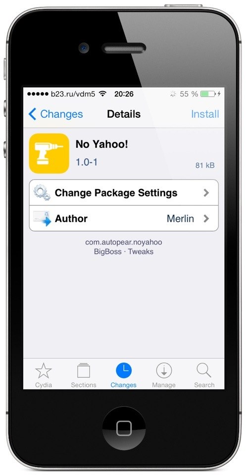 No Yahoo! - твик, который удалит логотип Yahoo из ЦУ и из стандартных приложений Apple..