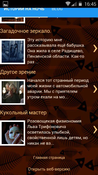 Страшные истории - Любите читать книги? Не не можете найти качественную литературу. Скачайте это приложение, в котором множество увлекательных страшилок. Здесь вы найдете более 3000 страшилок, все они написан разными людьми. Так же здесь есть система рейтинга, и вы сможете оценить отдельно каждое произведение. Стоит заметить что это приложение не требует подключения к интернету.