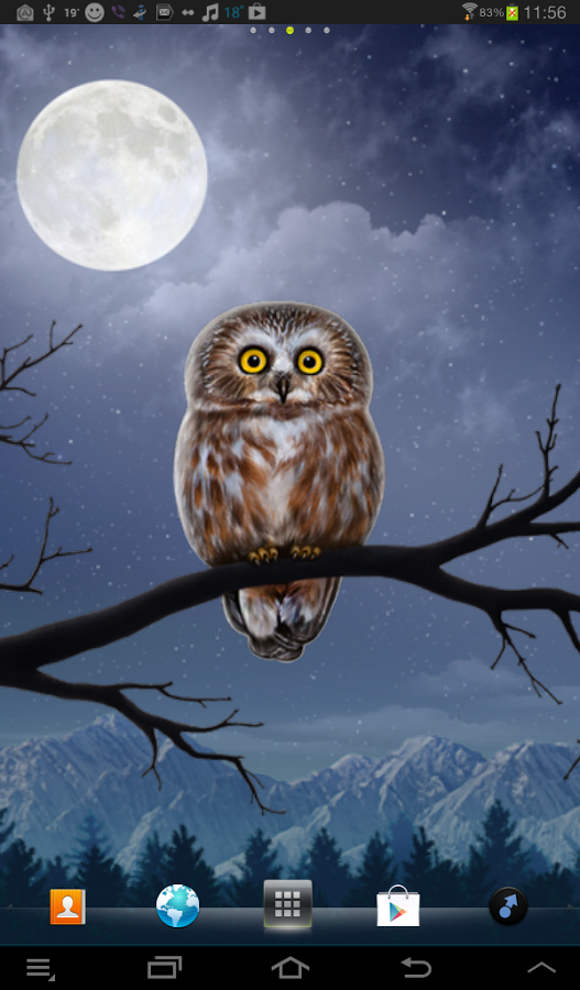Наслаждайтесь прекрасными совиными живыми обоями! Ночная природа, милая сова и проплывающие облака принесут хорошее настроение!