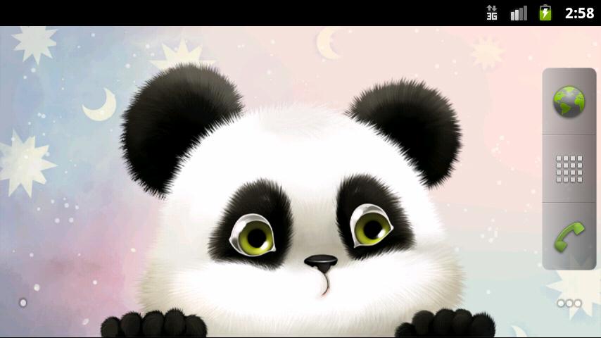 Забавная панда на вашем экране! Она будет следовать каждому вашему прикосновению и смотреть по сторонам, когда вы её не используете. Вы можете поместить панду в любую среду, выбрав один из пяти разных фонов.