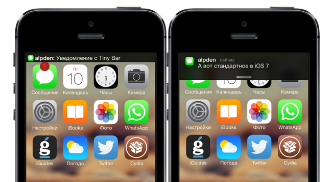 TinyBar - твик, с помощью которого вы сможете уменьшить размер "баннера" в центре уведомлений.