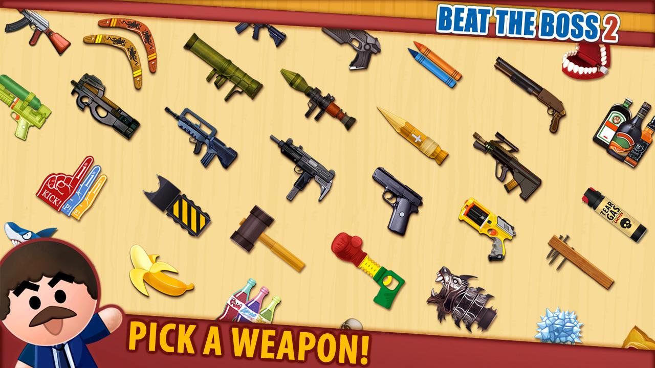 Beat the Boss 2 предлагает вам выпустить пар после суровых трудовых будней. Вы можете отомстить своему начальнику за каждое неприятное слово и неудобства, которые он вам доставляет. Вам доступны тонны пыток, море оружия. Вы можете набить ему морду, а можете пристрелить с нескольких видов огнестрельного оружия, кидать в него дротики, засовывать в мусорку и это только начало!