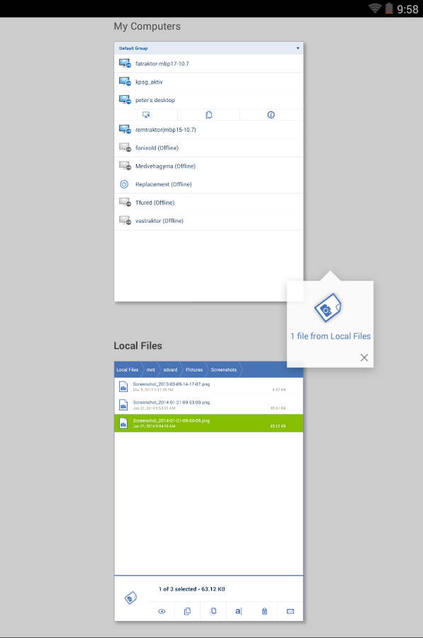 Консоль удаленного доступа к рабочему столу компьютера для устройств с операционной системой Android. Утилита получила название LogMeIn Ignition, позволяет работать с удаленным рабочим столом прямо на экране мобильного устройства, что очень удобно, когда надо проверить какие-либо сведения на своем ПК, а вы находитесь в далеке от компьютера, например, на отдыхе.