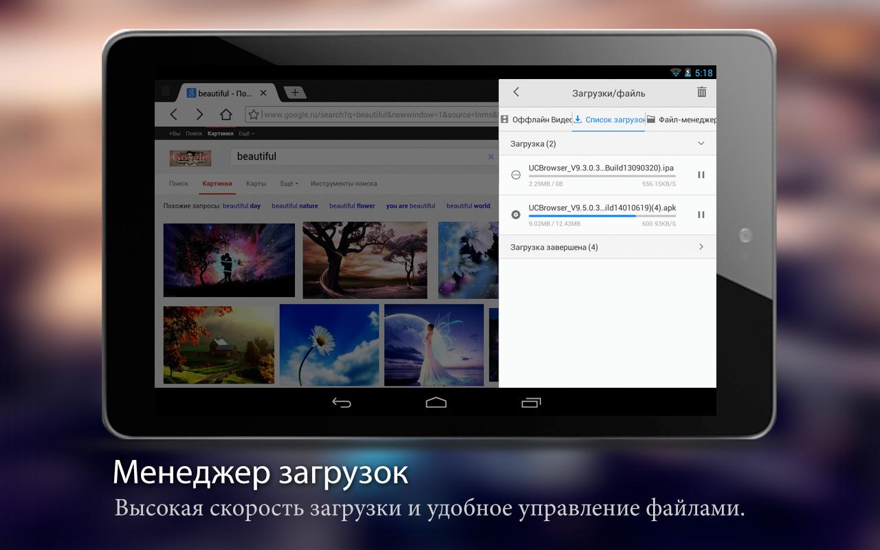 UC Browser HD для Андроид специально разработан для планшетов Андроид с целью предоставить пользователям наилучшее впечатление просмотра веб-страниц путем широкого использования больших экранов.
