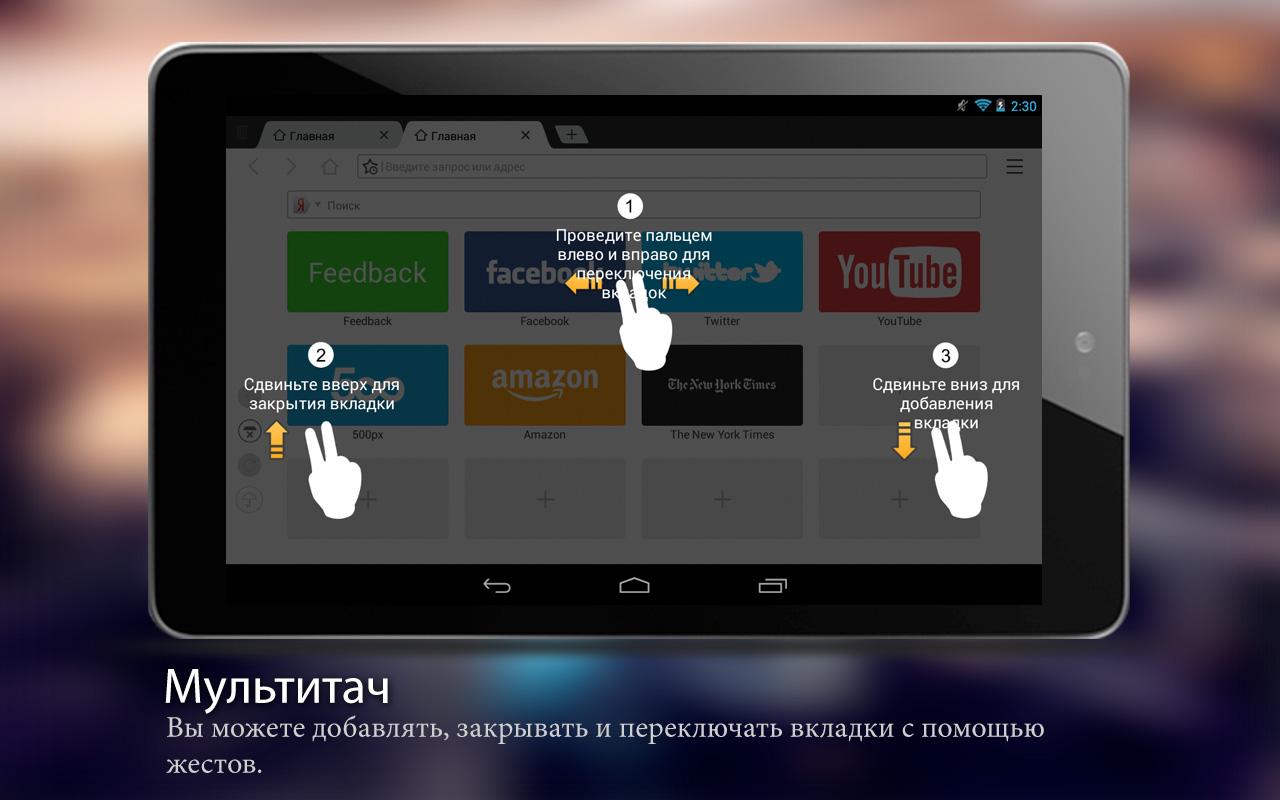 - Мультитач: Вы можете поиграть с UC Browser с помощью жестов и составить для себя больше команд жестами.