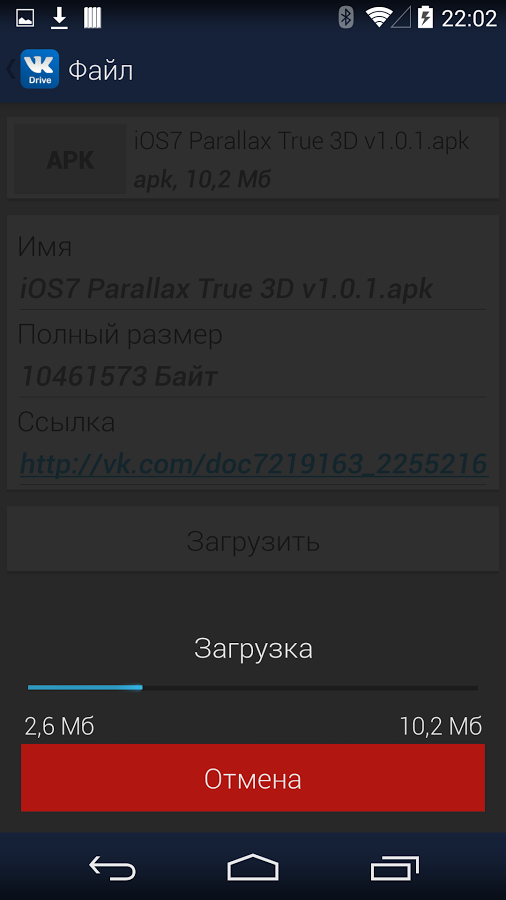 Поддерживается пакетная загрузка на телефон и на сервер. Вы можете отправить сразу несколько ссылок на файлы.Также приложение запоминает местоположение файлов на устройстве, вам не придется его искать по всему телефону. Доступ к файлам можно получить прямо со своей страницы Вконтакте в разделе "Документы".
