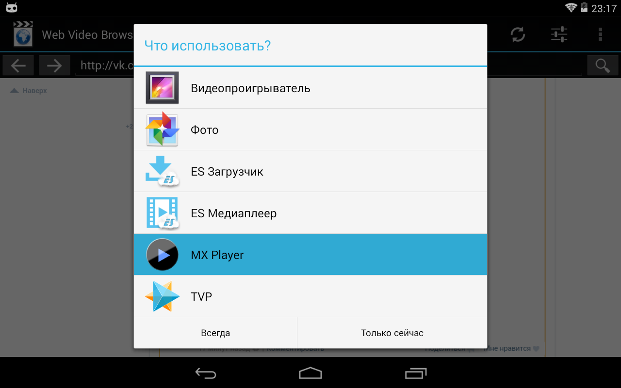 - Выбираем качество - открывается список приложений, которые могут воспроизвести видео