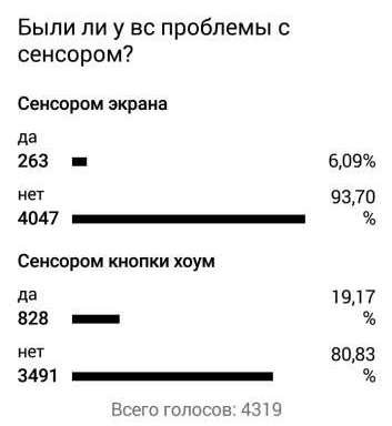 Серьезный брак: кнопка не реагирует как сенсор + к этому телефон начинает сам по себе перезагружаться, так же присудствует периодическое зависание экрана в режиме ожидания, т.е. после блокировки телефон впадает в своеобразную "кому" , не реагирует ни на какие нажатия, лечится только перезагрузкой при помощи удержания в течении 10 сек. кнопки питания. Судя по завершенному голосованию, проблема очень сильно распространена, затрагивает все цвета телефона и версии, при этом не важно в какой стране куплен телефон.