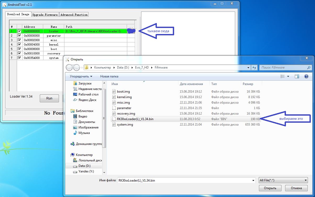 4) Далее прописываем пути к файлам (находятся в папке "Fifmware"):