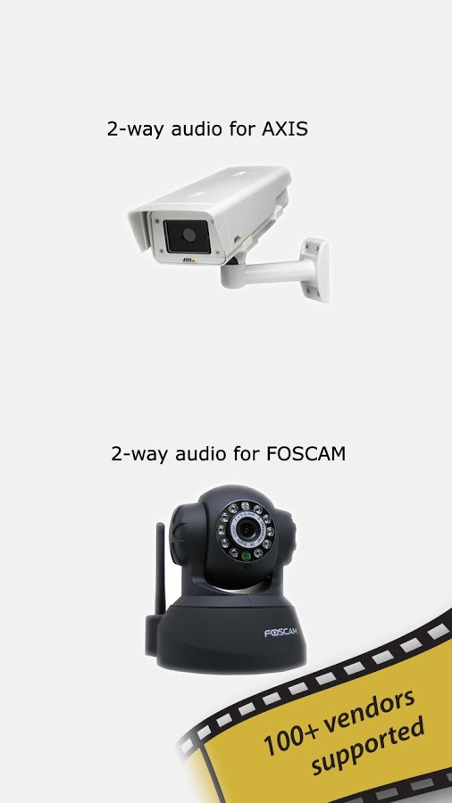 - Двунаправленный звук (говорить и слушать) для or Axis, FOSCAM, Apexis, Loftek, Tenvis, Wanscam, Wansview, INSTAR.