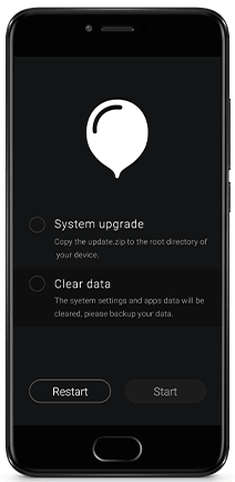 2. Запустить файл update.zip сделав тап по нему пальцем. Отметить пункт "Очистить данные" ("clear data") при необходимости (если понижаете версию Flyme OS отметить в обязательном порядке, при этом все ваши личные данные будут удалены!)