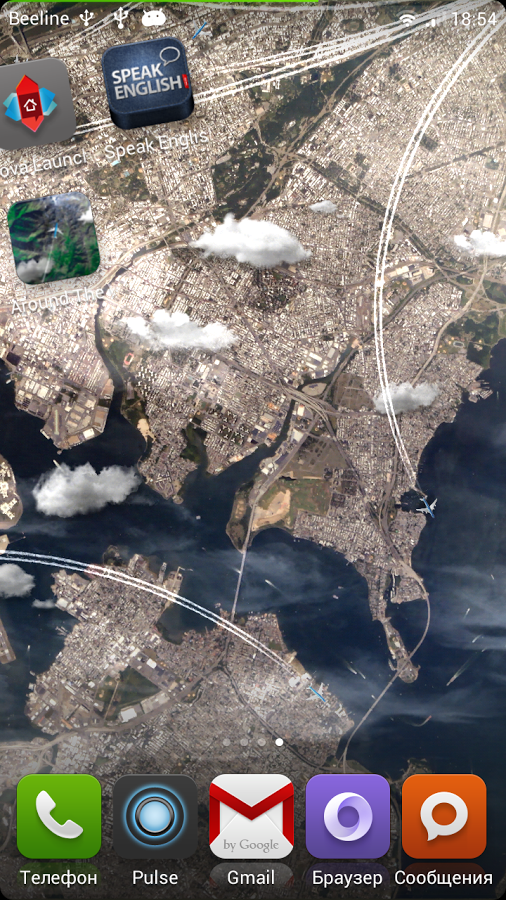 - анимированные облака и пролетающие самолеты, оставляющие следы