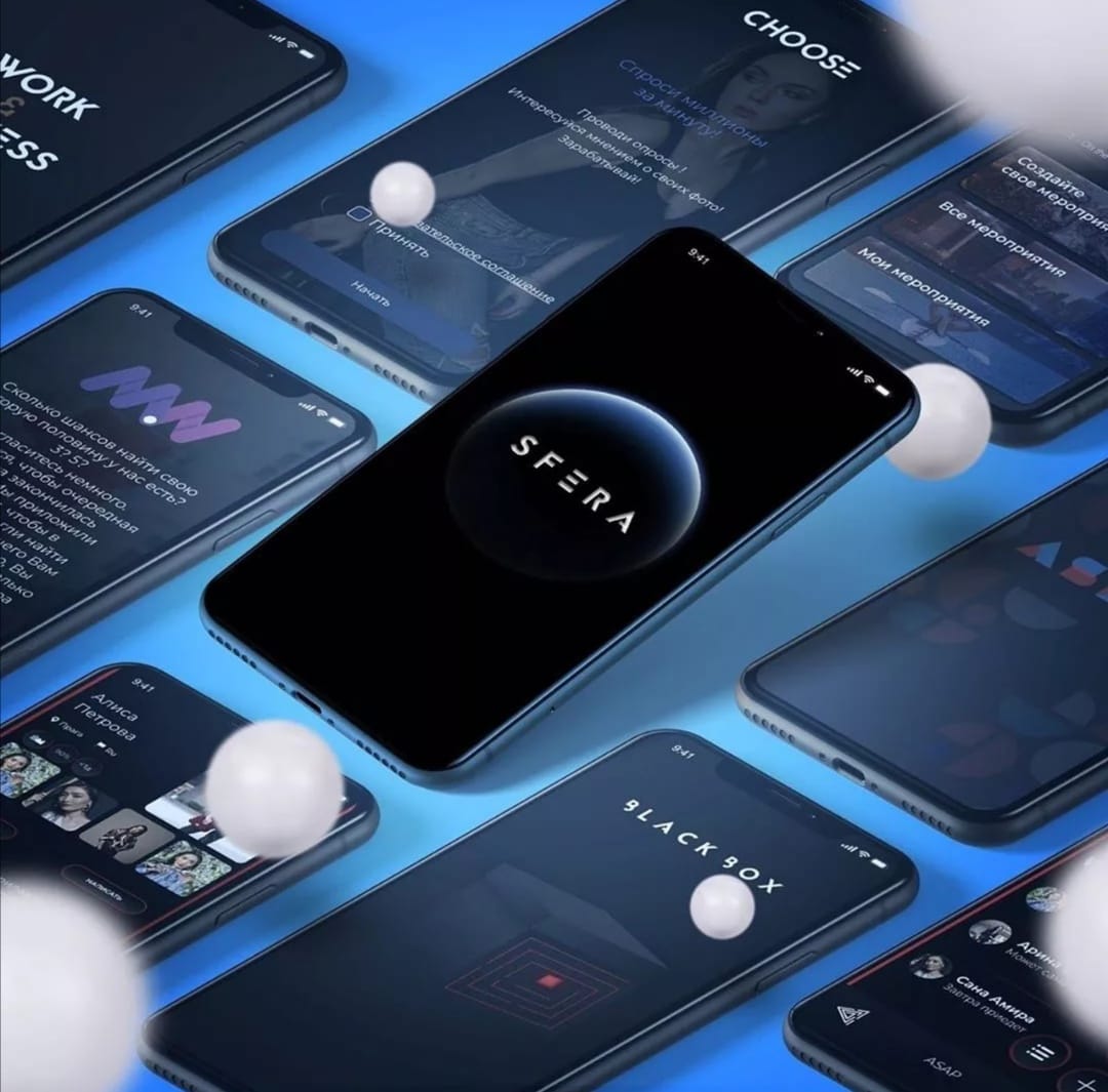 Платформа приложений SFERA включает в себя более 30 приложении разработанных с нуля. Всё приложения взаимосвязаны между собой, но при этом решают свою определенную задачу. Базовым для всей платформы является профиль пользователя с мессенджером Asap, куда стекается вся переписка в SFERA. Всё остальные подприложения устанавливаются индивидуально, в соответствии с потребностями пользователя. Подробнее в соцсетях проекта: