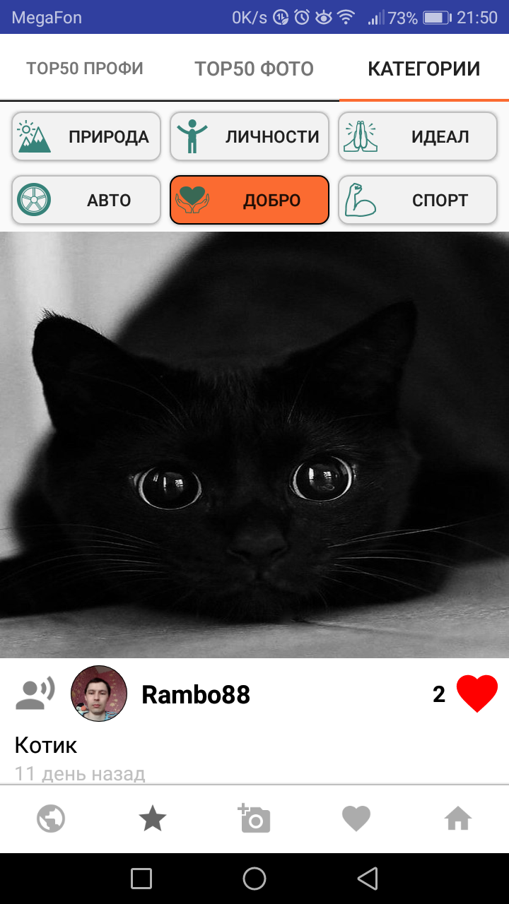Fotomagma - это Android сервис независимой оценки фотографий. Пользователи данного сервиса могут загружать причудливые, интересные фотоснимки и получать справедливую оценку своей работе в виде "лайков". Путем рандомного показа изображений и их независимой оценки создается рейтинг наиболее удачных авторов. Публикуйте живописные, радующие глаз композиции и становитесь популярным фотомагом!