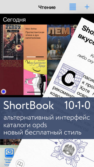 Чтение книг на портативных устройствах — всегда компромисс комфорта чтения и оперативной доступности текста. ShortBook предлагает оригинальное решение этой проблемы благодаря внимательному подходу к вёрстке текста на ограниченной площади экрана iPhone. Множество экспериментов с различными вариантами композиции текста и организации интерфейса «выкристаллизовали» уникальное сочетание для комфортного чтения. Если Вам нужно читать долго, с удобством и без существенного вреда для зрения, воспользуйтесь программой ShortBook — ридером high-end класса.
