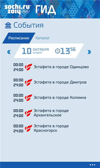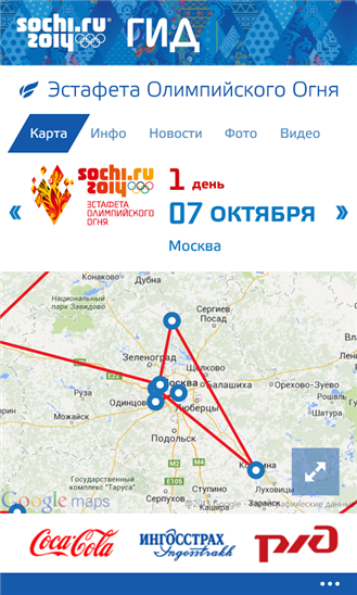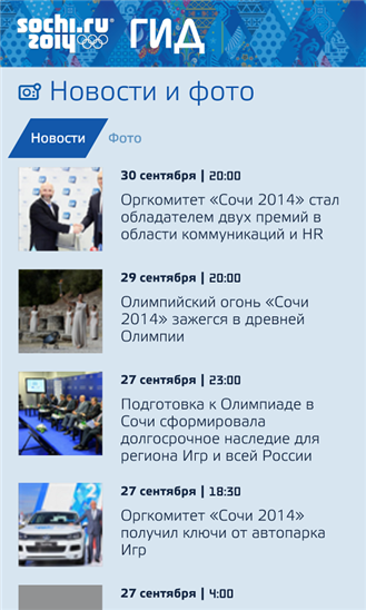 Мобильный путеводитель по Олимпийским и Паралимпийским зимним играм в Сочи сделает для тебя Игры незабываемыми и полными ярких впечатлений. Ты сможешь быть в курсе последних событий, знать точное расписание соревнований и других мероприятий, следить за Эстафетами Олимпийского и Паралимпийского огня, приобретать билеты, планировать поездку, ориентироваться в городе Сочи и на спортивных объектах с помощью интерактивной карты, делиться впечатлениями с друзьями и многое другое. Гид «Сочи 2014» - это твоя энциклопедия Игр!