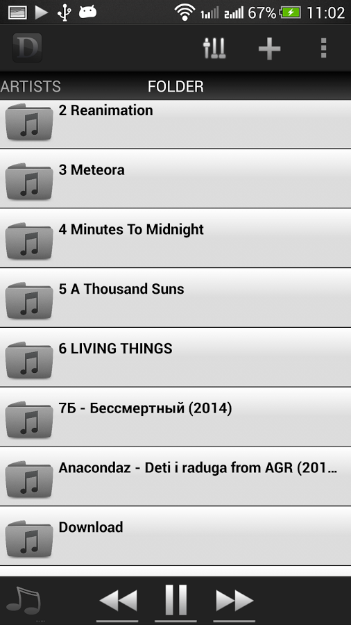 - Просмотр и воспроизведение музыки по альбомам, песням, папкам.