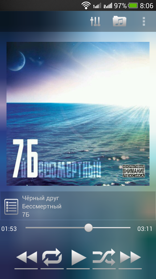- Поддержка УВЕДОМЛЕНИЙ: показ обложки альбома, название альбома и артиста, воспр./пауза,