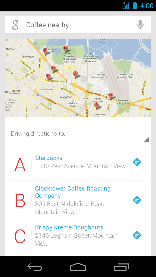 И это ещё не все! *Google Now* показывает подсказки, когда они действительно нужны. Прогноз погоды, сведения о пробках на дороге, напоминания и многое другое – только для вас.