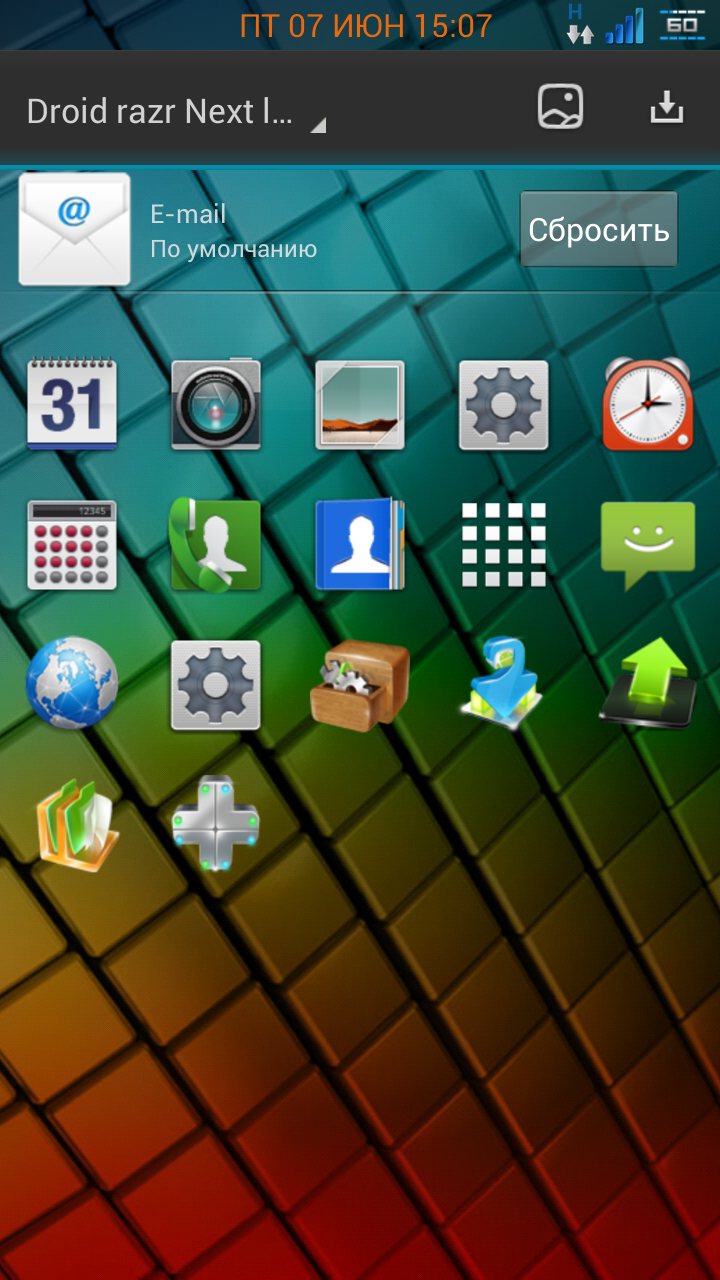 Сегодняшняя тема Droid Razr Theme GO Launcher EX может понравится всем любителям компании Motorola, их тонких и изящных смартфонов Droid Razr. Поскольку все иконки сделаны по форме смартфона Droid Razr. К тому же они большие на рабочем и чуть меньше в док-баре. В комплекте идет 80 иконок, но автор обещает расширить ассортимент до 250 и более, в зависимости от количества оценок и отзывов на Google Play. Также в комплект входит 7 красивых обоев для рабочего стола (возможно взятые из набора стандартных обоев на смартфонах Motorola).
