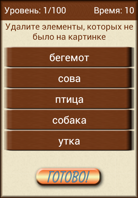 "А был ли котик?" - этот вопрос, как и подобные ему, обязательно возникнут у вас во время игры, ведь у вас будет всего 10 секунд, чтобы запомнить изображеное на предложенной вам картинке. Думаете, легко? Наверное, несложно запомнить три-четыре изображенных предмета, но справитесь ли вы с более сложными заданиями? Проверьте свою память и внимание!