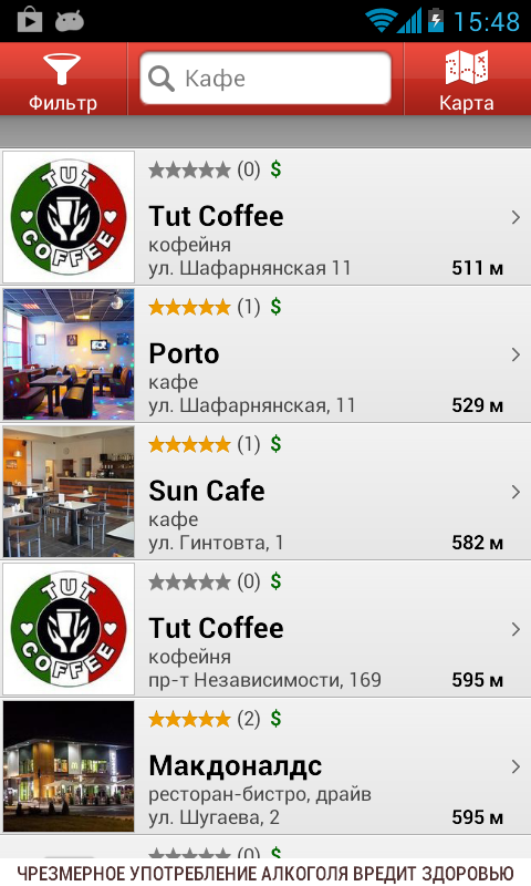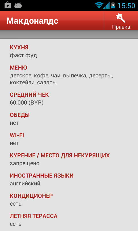 ★ каталог содержит следующие категории: рестораны, кафе, клубы, обувь, одежда, секонд хенд, кинотеатры, туалеты, транспорт, банки, wi-fi доступ, супермаркеты, гипермаркеты, автомойки, азс, шиномонтаж, гостиницы, хостелы, банкоматы, доставка еды, аптеки, ветпомощь, детские товары, бани и сауны, бильярд, боулинг, казино, такси, метро, обмен валют, посольства, детям, пейнтбол и лазертег.