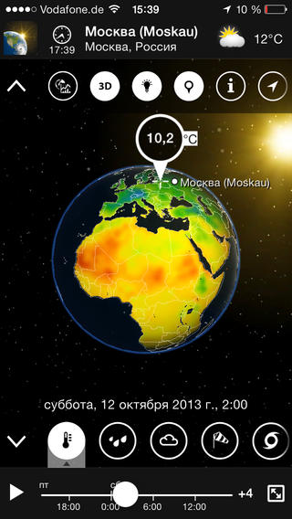 MeteoEarth является адаптацией профессионального прогноза погоды, транслируемого по телевидению по всему миру. MeteoEarth действительно оживляет погоду, используя высококачественные игровые технологии и удивительную графику.