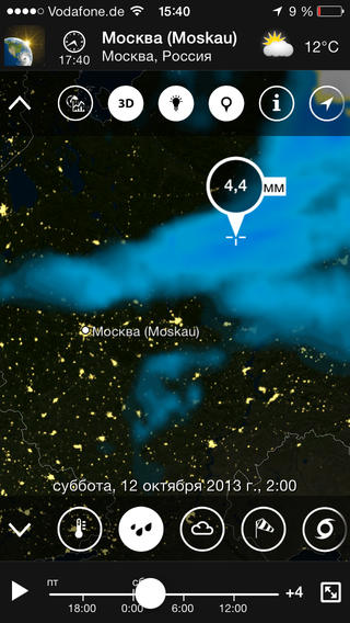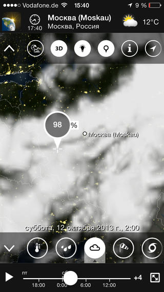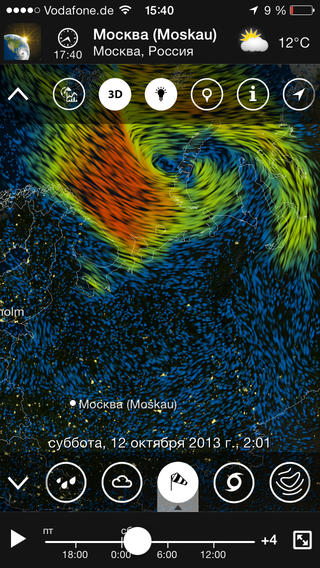 Это интерактивное приложение не устанет Вас удивлять, особенно когда вы нацелитесь на дождевой фронт надвигающийся на Европу, а затем медленно перейдете к просмотру облачности, потоков ветра, дождя или снегопада в парке Роки-Маунтин. Некоторые новые функции позволят Вам: