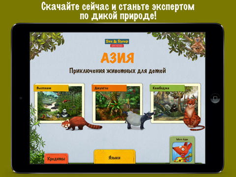 Азия: Приключения животных для детей» – это приложение превратит детей в маленьких экспертов по флоре и фауне дикой природы, и станет интересным для всей семьи. Откройте интересные факты более чем о 40 азиатских животных в трех видах окружения. Прикоснитесь к любому животному, чтобы запустить потрясающую анимацию и звуки. Полностью озвученные рассказы на 12 языках.