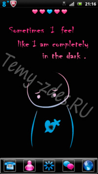 Не много депрессивная тёмная тема для смартфонов на Андроид, с отлично подобранными иконками меню.