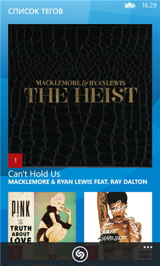 - открыть для себя новую музыку с помощью списка тегов Shazam