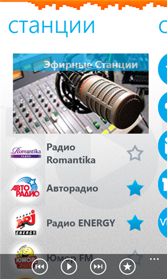 - выбирать последние станции и вносить в Избранное одним прикосновением