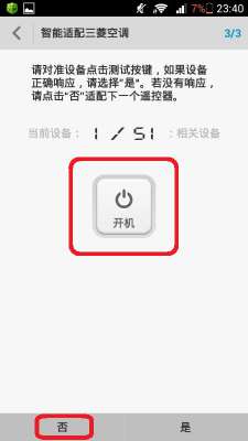 - Начинаем поиск подходящих команд ИК-порта для управления кондиционером. Нажимаем кнопку в центре экрана ("Включения кондиционера")