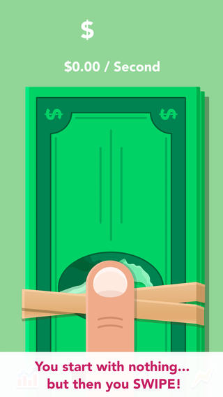 Проведите пальцем вверх по пачке купюр, чтобы заработать деньги. Чем больше вы зарабатываете, тем быстрее вам это удается… Как быстро вы сможете проводить пальцем вверх? Сколько сумеете заработать?