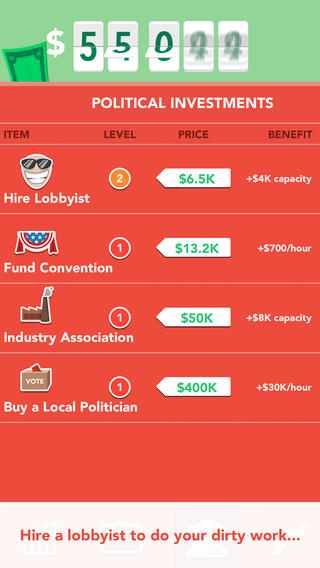 - Вкладывайте деньги в политику, чтобы зарабатывать даже при выключенном приложении.