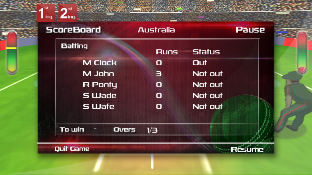 Выбираем себе страну и начинаем свой путь к полной победе. Игра порадует вас хорошей графикой, увлекательным геймплеем и подарит вам массу положительных эмоций. Так что игру можно рекомендовать всем фанатам данного вида спорта. А если вы не знаете правил, тоже не беда, в игре вы достаточно быстро разберётесь что к чему.