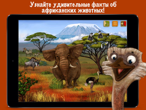 «Африка: Приключения животных для детей» – это приложение превратит детей в маленьких экспертов по флоре и фауне дикой природы, и станет интересным для всей семьи. Откройте интересные факты более чем о 40 африканских животных в трех видах окружения. Прикоснитесь к любому животному, чтобы запустить потрясающую анимацию и звуки. Полностью озвученные рассказы на 12 языках.