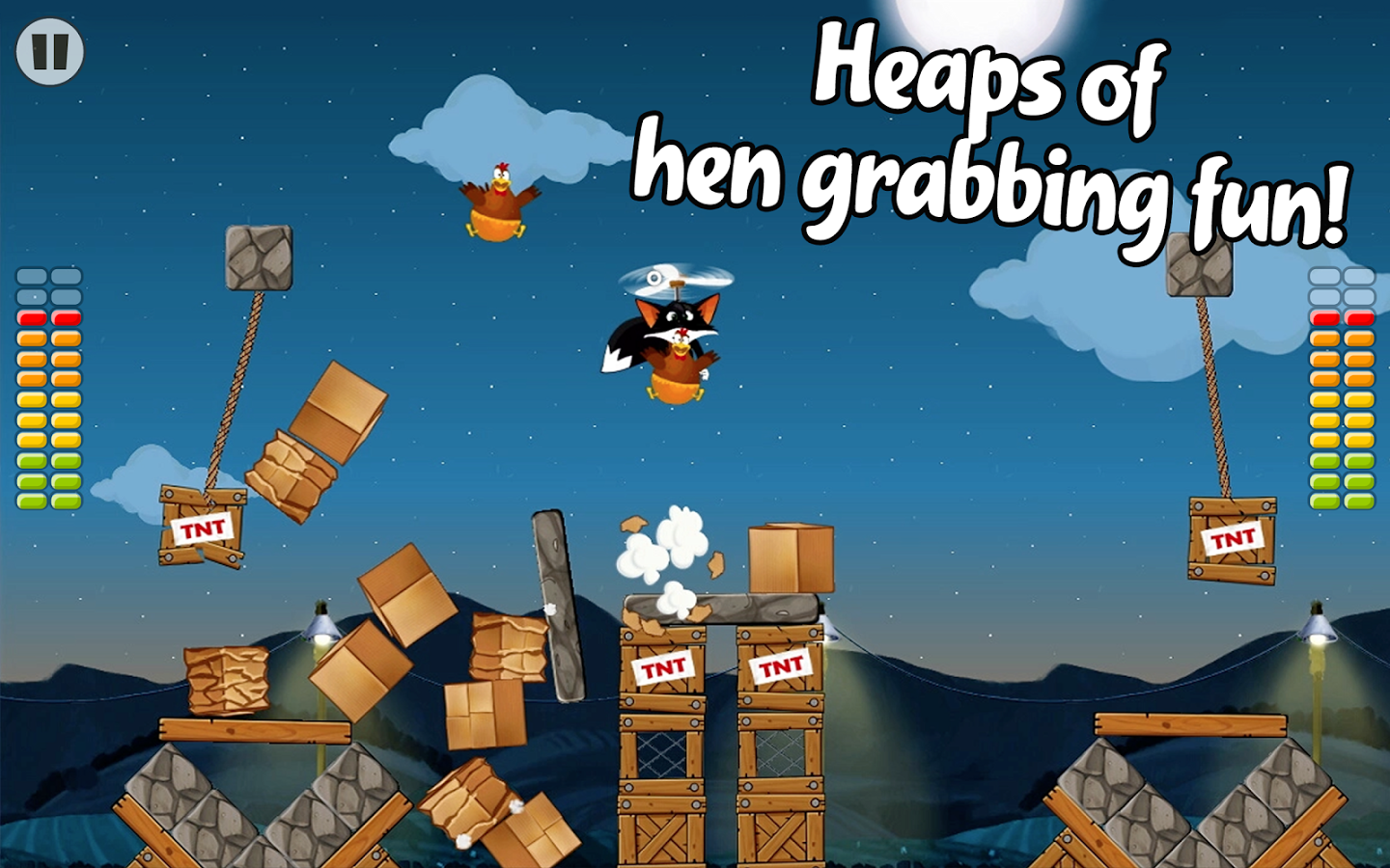 - Уникальная игровая модель — летать, пикировать сверху, хватать убегающих куриц — проще простого.