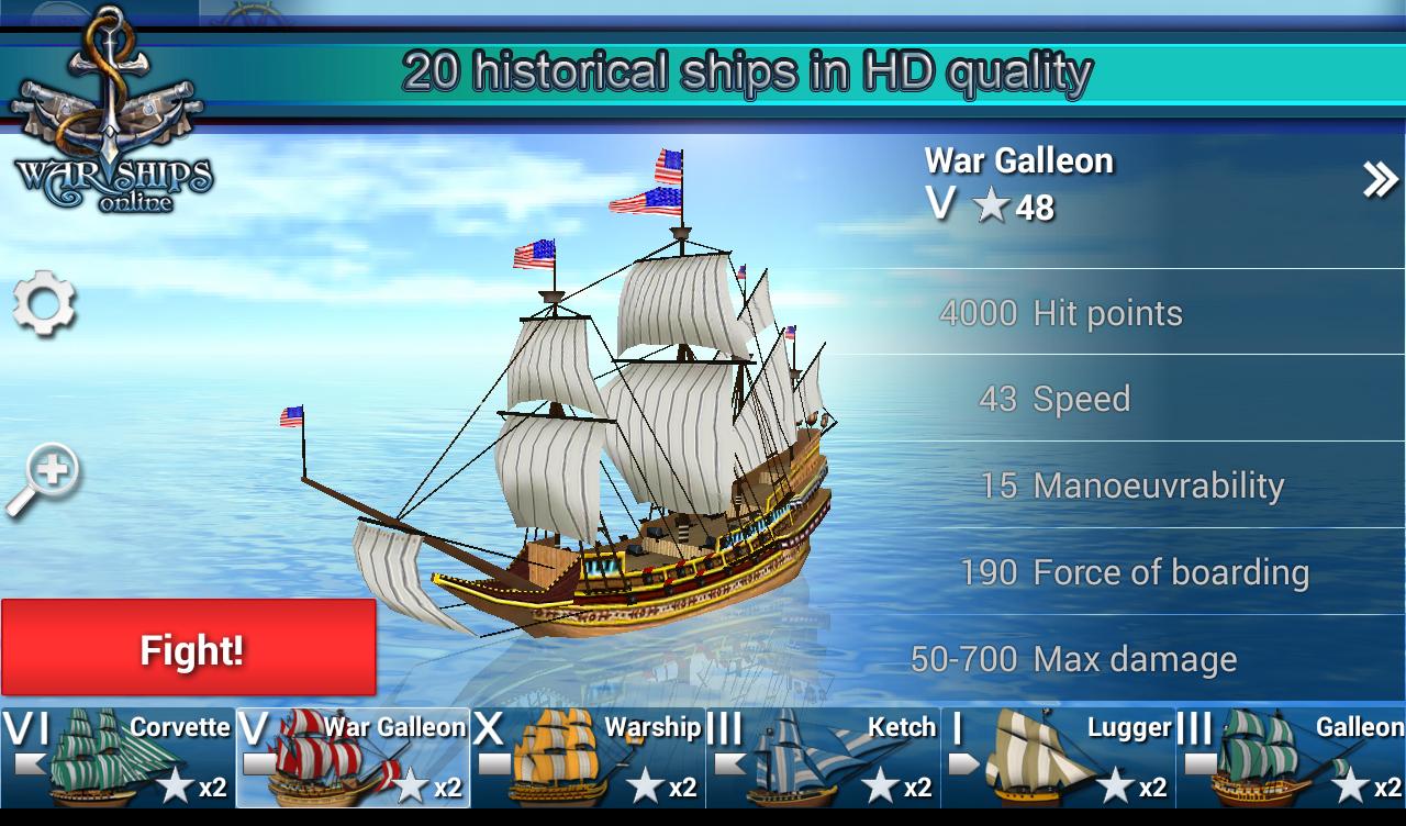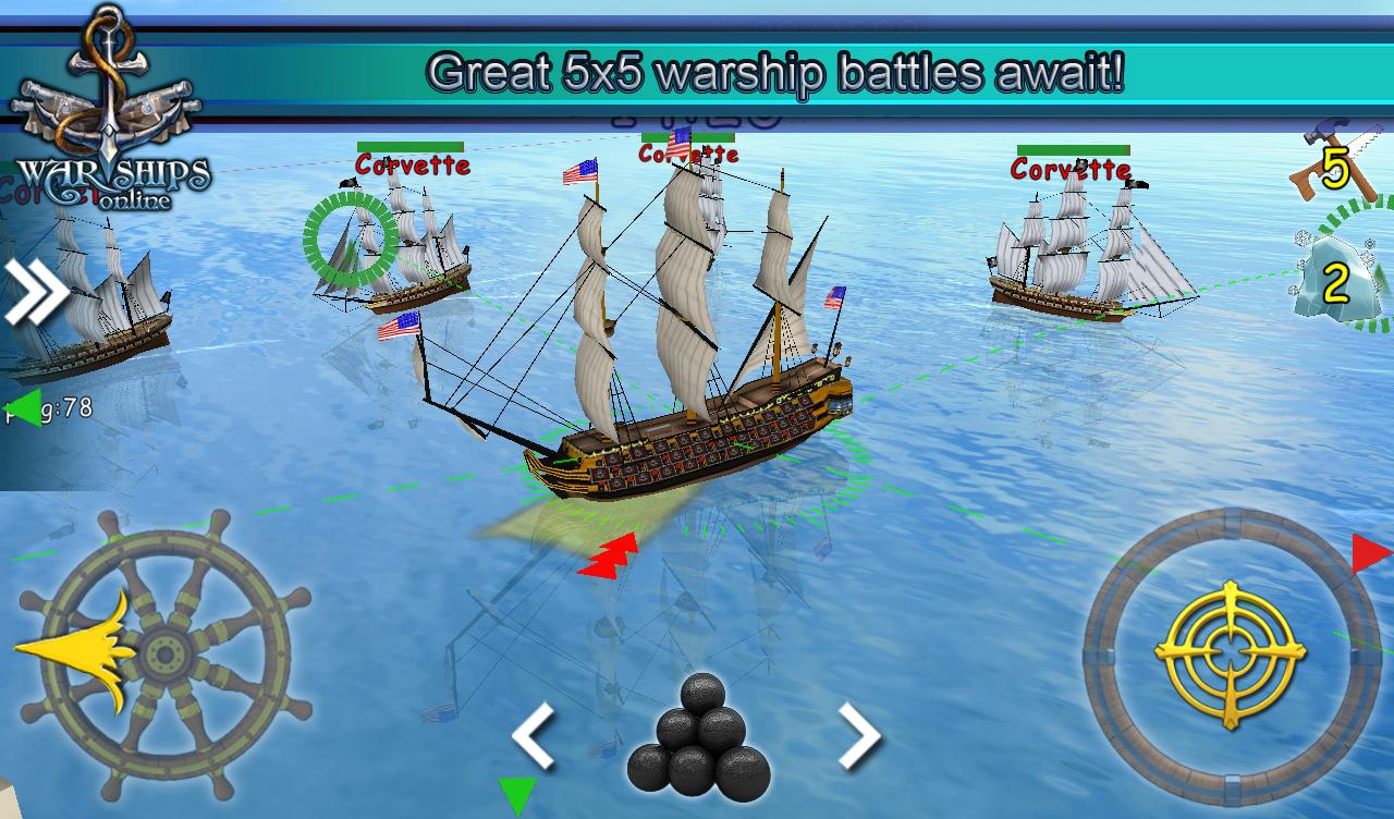 Величественные корабли флотов Испании, Франции и Англии поднимают паруса! Если слава Фрэнсиса Дрейка волнует кровь, а романтика морских сражений будоражит воображение — вставайте к штурвалу и готовьтесь к бою! Мореплаватели со всего земного шара собрались, чтобы решить в смертельном бою, кто самый отважный на белом свете. Warships Online — это сетевая ММО игра в жанре RPG для устройств на базе Android, первый шутер симулятор корабельных боев подобного уровня с реалистичной физикой и детально воспроизведенными историческими кораблями.