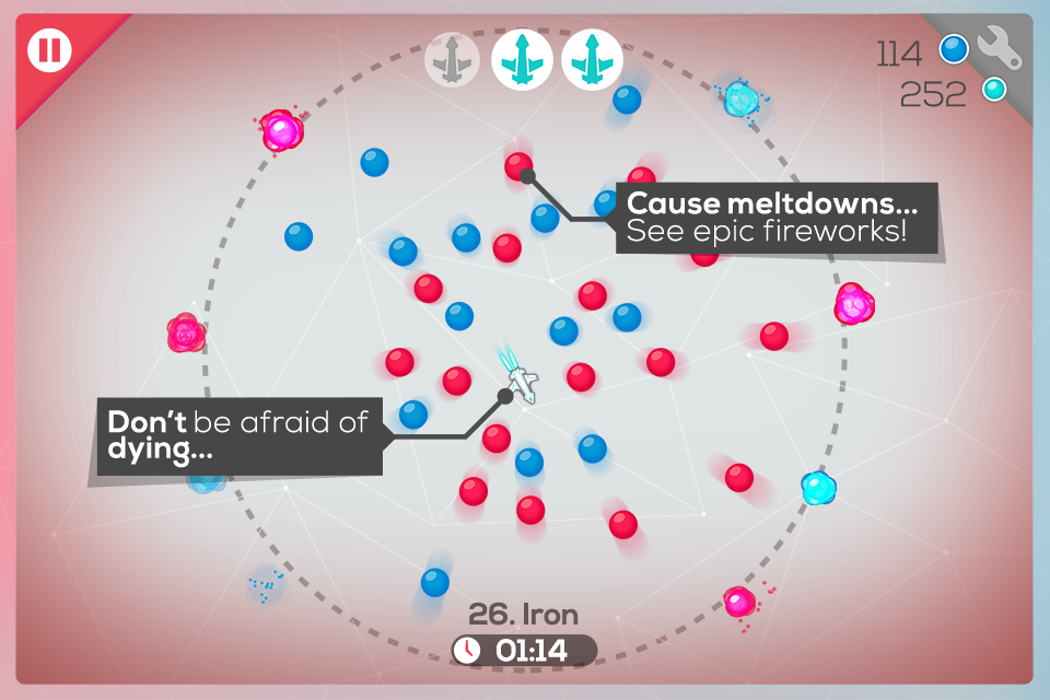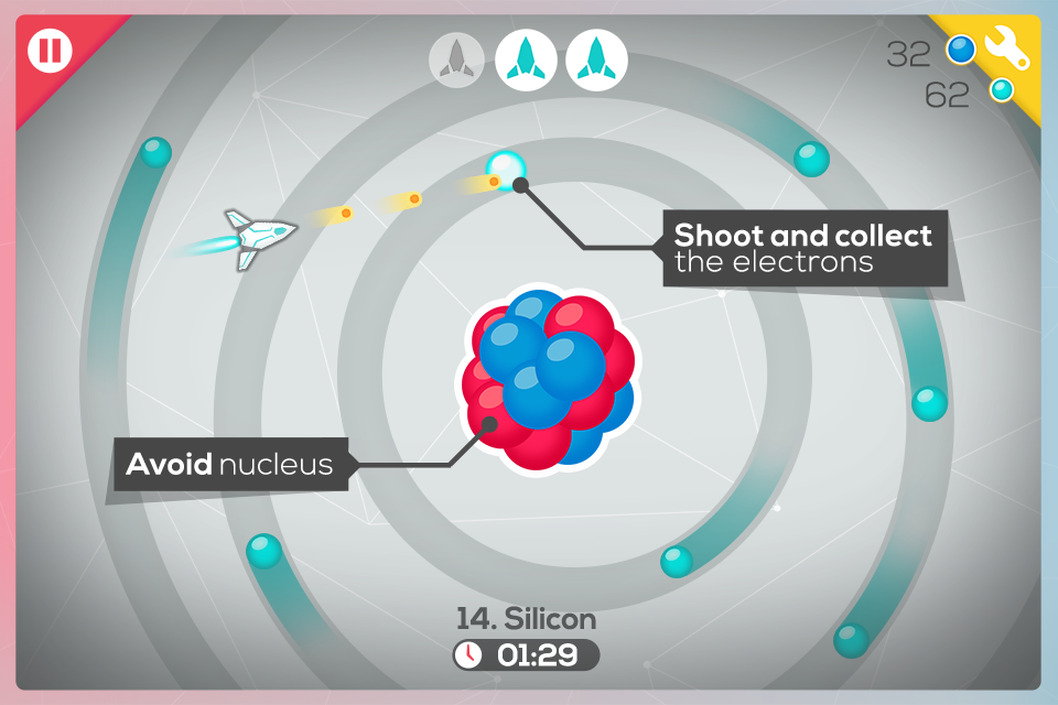 Atom Shooter - отличная аркада для Вашего мобильного устройства. В этой необычной игре Вам предстоит обстреливать и уничтожать химические элементы на протяжении 118 игровых уровней. На игровом поле будут элементы, которые Вам необходимо расстреливать со своего маленького корабля, и когда элементы распадаются на атомы, Вам нужно собирать синее нейроны, избегая красных протонов. Игра обещает быть нескучной, доступно несколько игровых режимов.